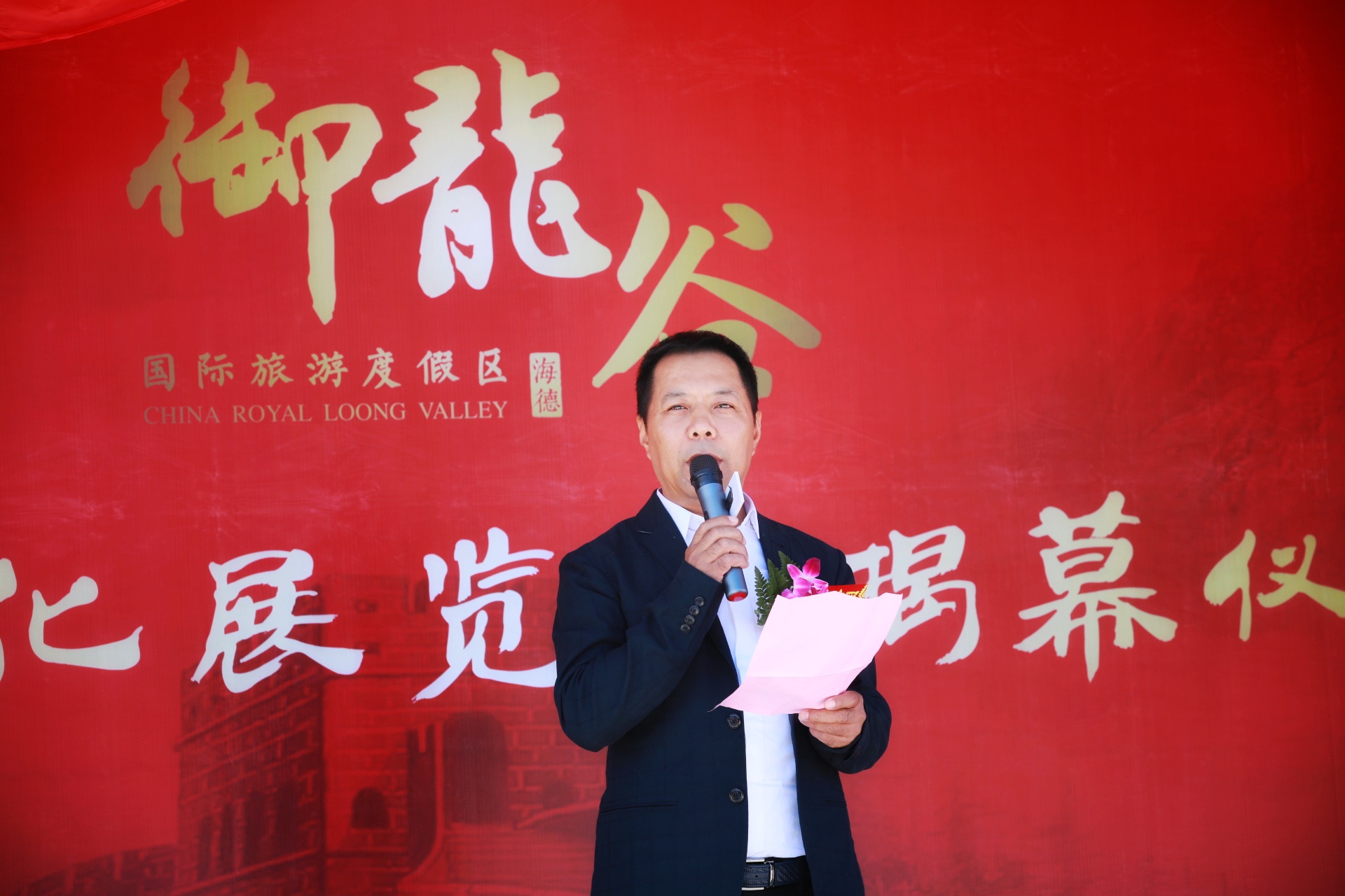 首先進行的是御龍谷行宮文化展覽館揭幕儀式,海德集團董事長馮祿海代表本次活動的主辦方致歡迎辭,馮總表示御
