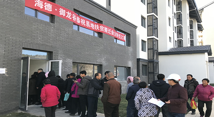 動(dòng),海德集團(tuán)御龍谷項(xiàng)目的工作人員現(xiàn)場為180戶易地扶貧搬遷戶辦理入住手續(xù),發(fā)放安置房鑰匙。